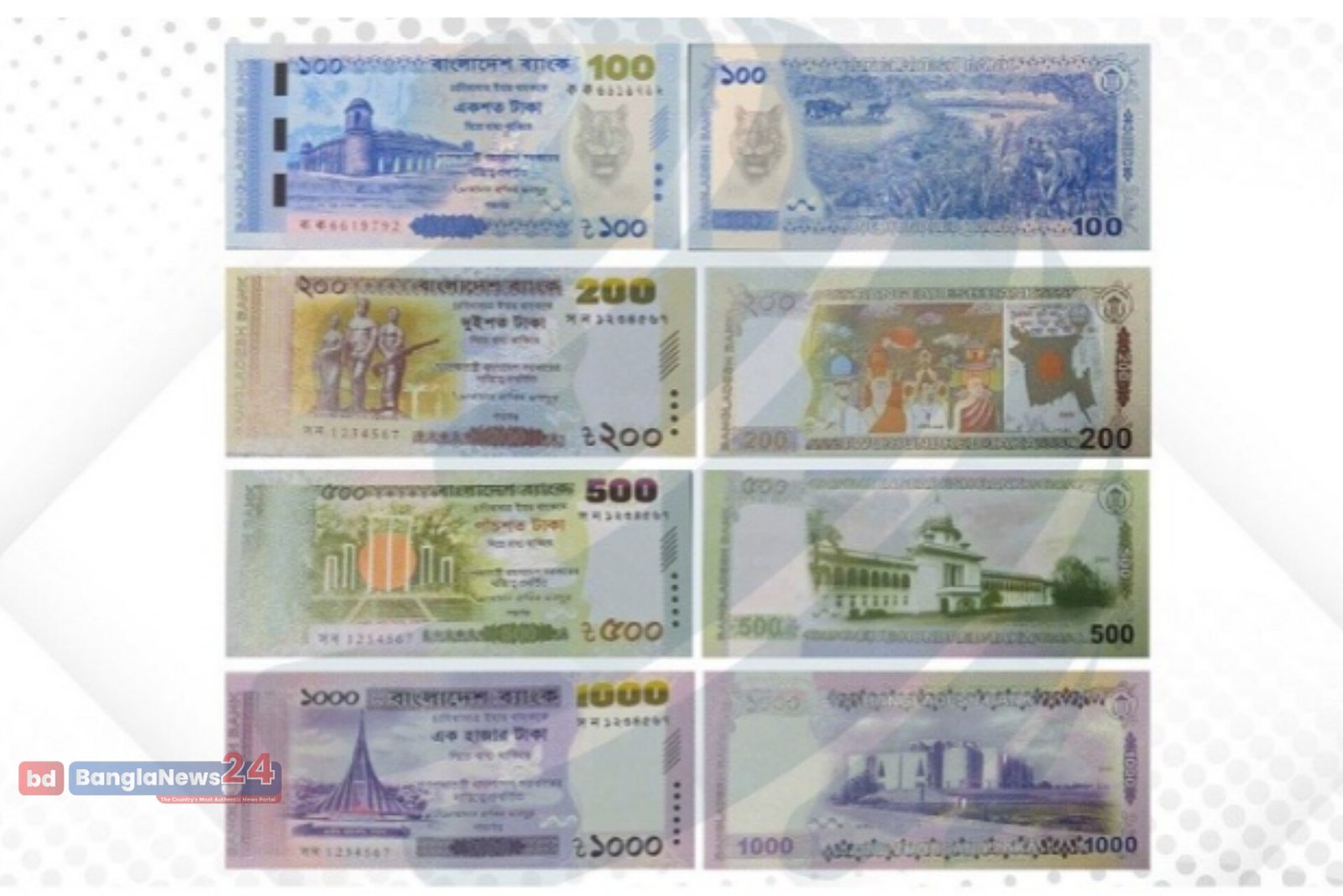 বাংলাদেশ ব্যাংক দেশের অর্থনীতি ও সংস্কৃতি আরও ঘনিষ্ঠভাবে উপস্থাপন করতে বাজারে আনছে নতুন ডিজাইনের টাকার নোট। এসব নোটে দেশের গুরুত্বপূর্ণ ঐতিহাসিক, প্রাকৃতিক ও সাংস্কৃতিক প্রতীকগুলোকে বিশেষভাবে তুলে ধরা হয়েছে। সব নোটে রয়েছে নতুন গভর্নর আহসান হাবিব মনসুরের স্বাক্ষর।