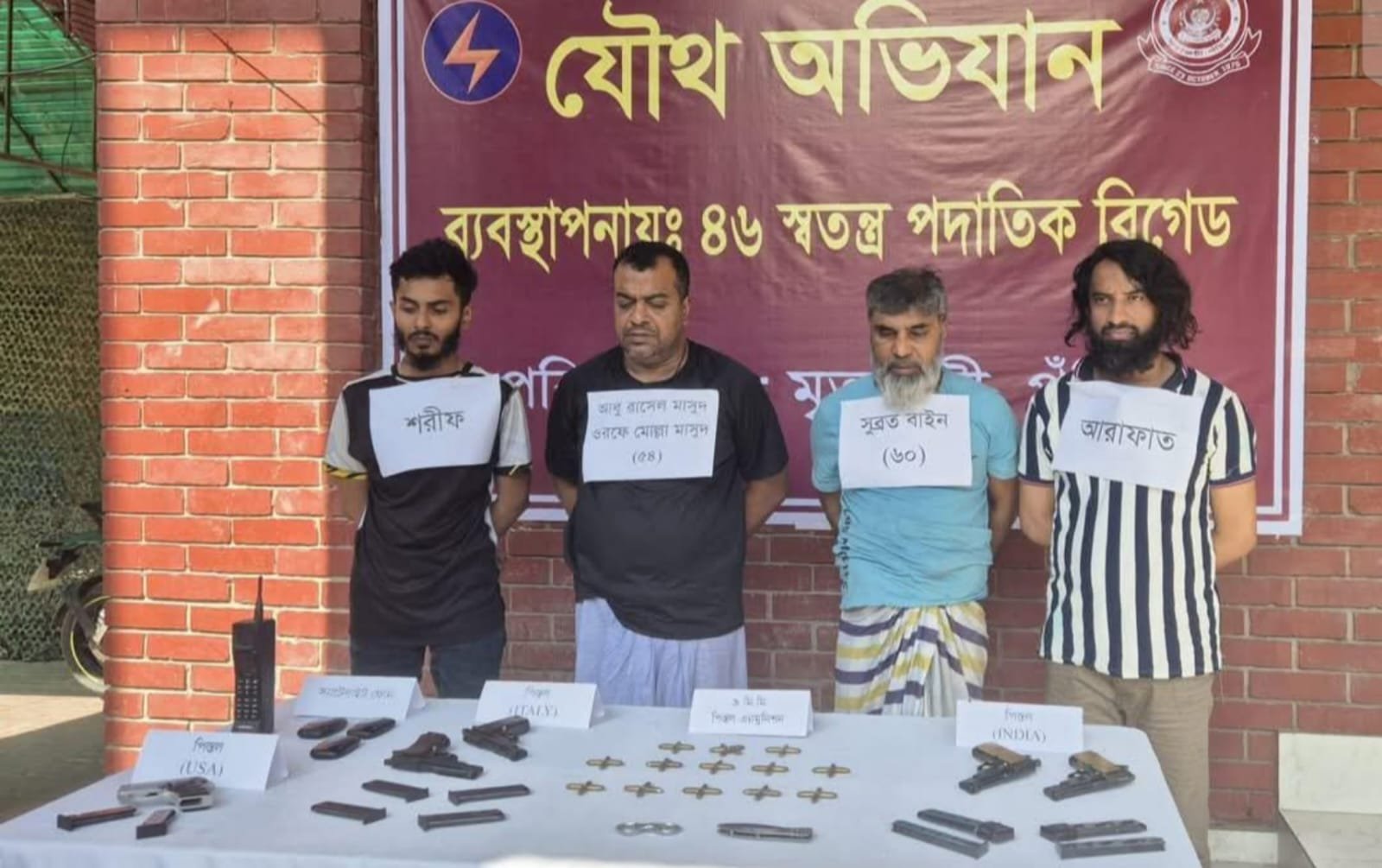 এ সময় ০২টি পিস্তল, ০৪ টি ম্যাগাজিন, ১০ রাউন্ড গুলিসহ সুব্রত বাইনের অন্যতম সহযোগী মোল্লা মাসুদ কেউ গ্রেফতার করা হয়।